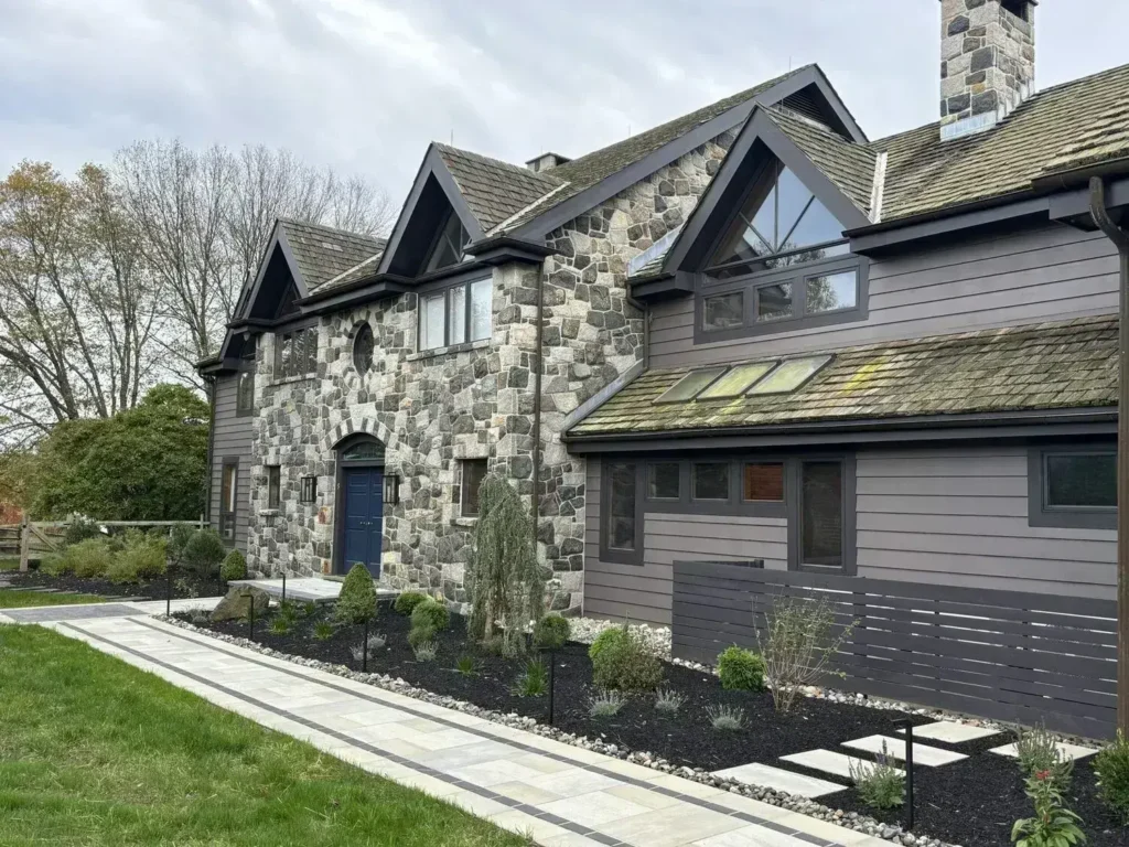A front walk should feel like an arrival. A red carpet in stone, if you will. Wide, well-laid walkways in natural stone or pavers draw the eye, define the entry, and endure Chester County winters in a way that cracked concrete never will.